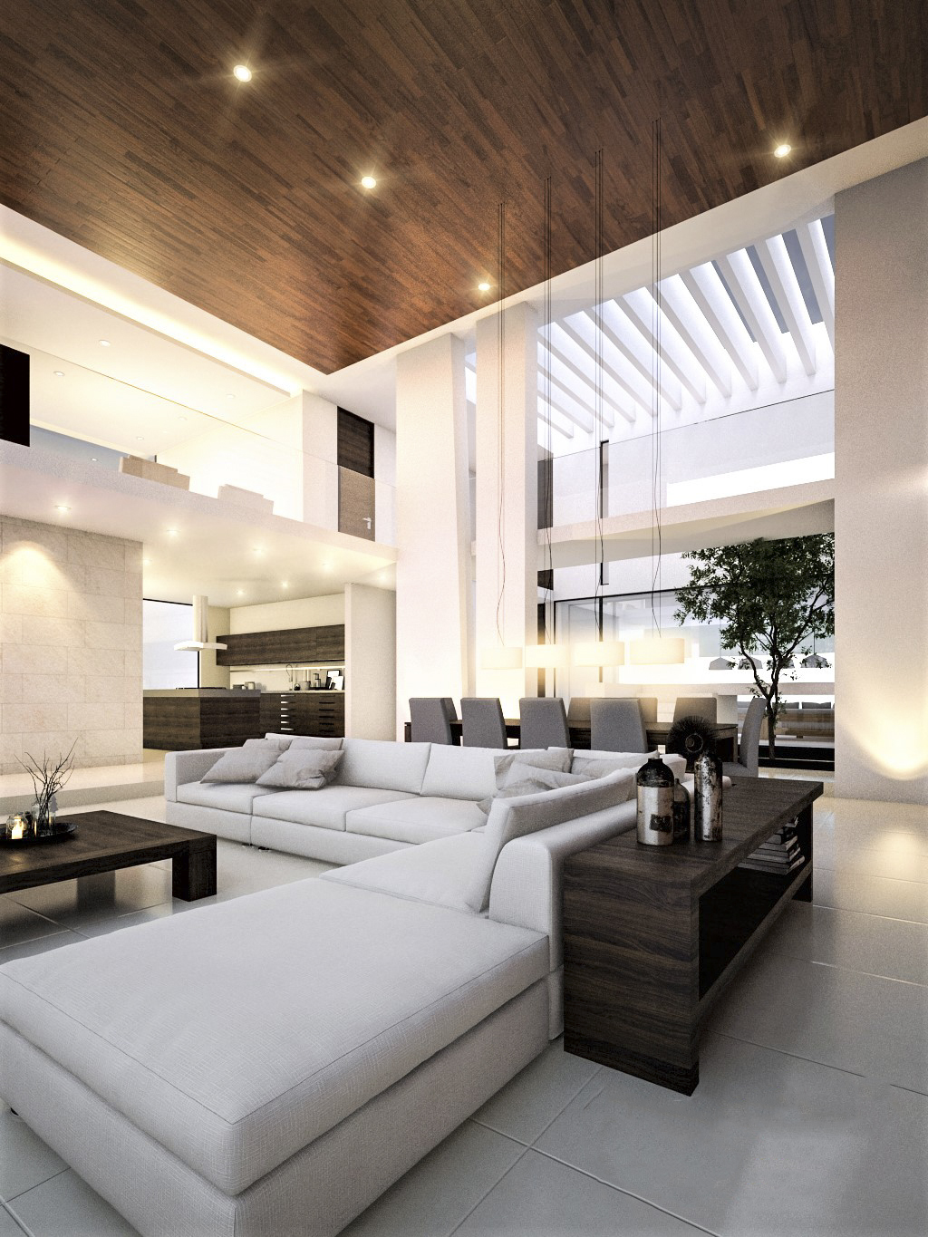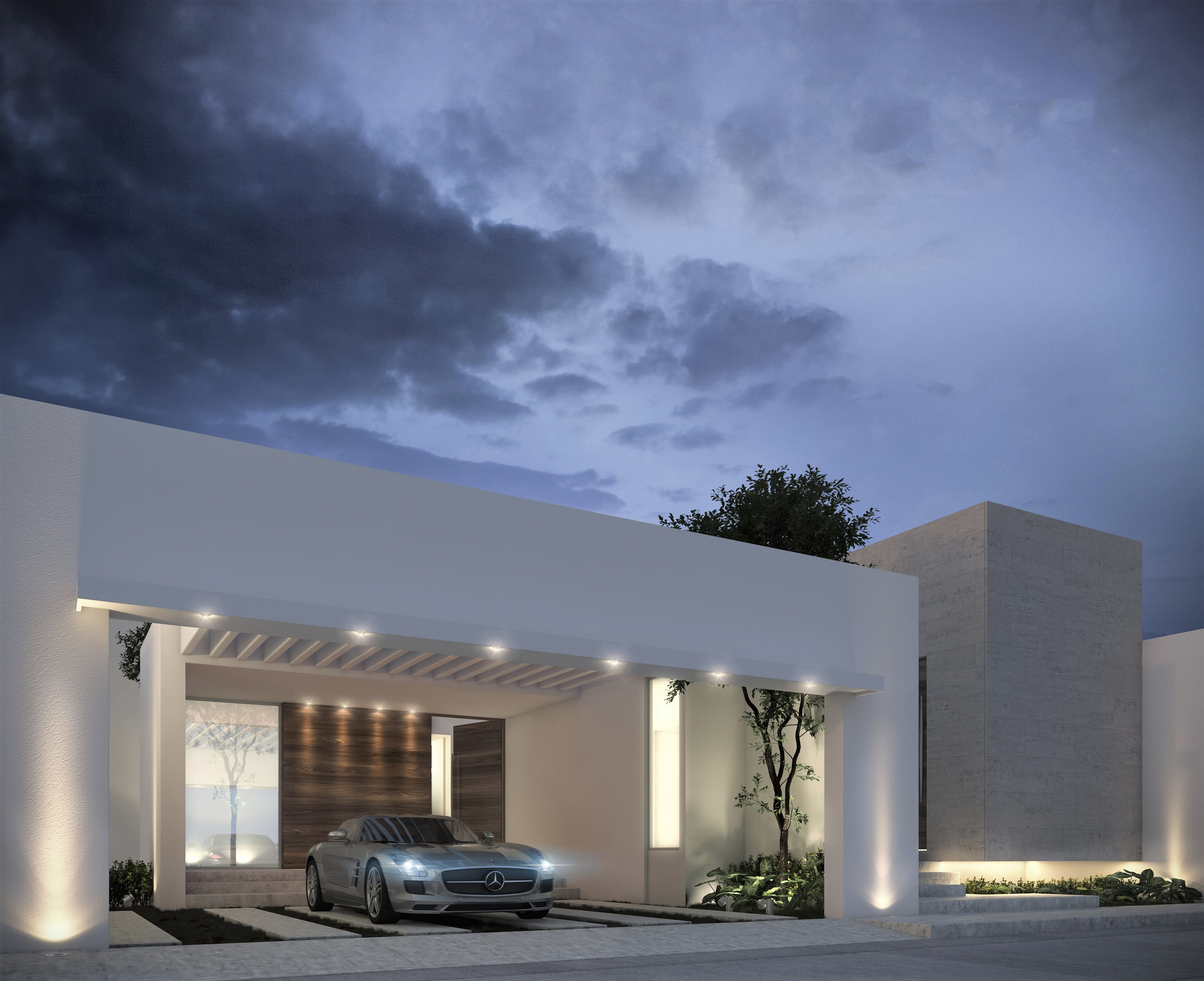 Este proyecto está conformado por una residencia y un consultorio independiente, esta característica y las cualidades del terreno propiciaron poder trabajar en la parte anterior a un nivel y la parte posterior a dos niveles. El punto focal de la casa es la gran sala y el comedor a doble altura con las escaleras como elemento escultórico y primordial en las visuales del proyecto, así como su imponente pérgola que permite el paso de la luz solar hacia un jardín interior que se abre y emerge desde la parte inferior de la escalera. Esta doble altura nos genera una serie de circulaciones que que invitan a la contemplación mediante espacios, abiertos, iluminados y ventilados de manera natural.
