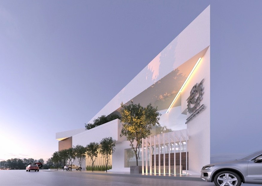 Este proyecto fue desarrollado para alojar las oficinas corporativas de un sindicato, además de una gran sala de exposiciones que, a su vez, puede dividirse en tres según las necesidades de los usuarios. La orientación del sol y la ubicación del terreno, dio a paso a un concepto arquitectónico que evoca transparencia, firmeza, fluidez y amplitud, todo mediante figuras geométricas simples como uso de rectángulos, triángulos y cuadrados. Era indispensable crear una estructura que permitiera aprovechar la luz del sol y la ventilación natural, pero que a su vez evitara la incidencia directa de los rayos solares, ya que en verano las temperaturas pueden elevarse hasta los 40°C; Es por eso que el uso de celocías y patios internos con vegetación fue primordial, logrando un gran ahorro energético.