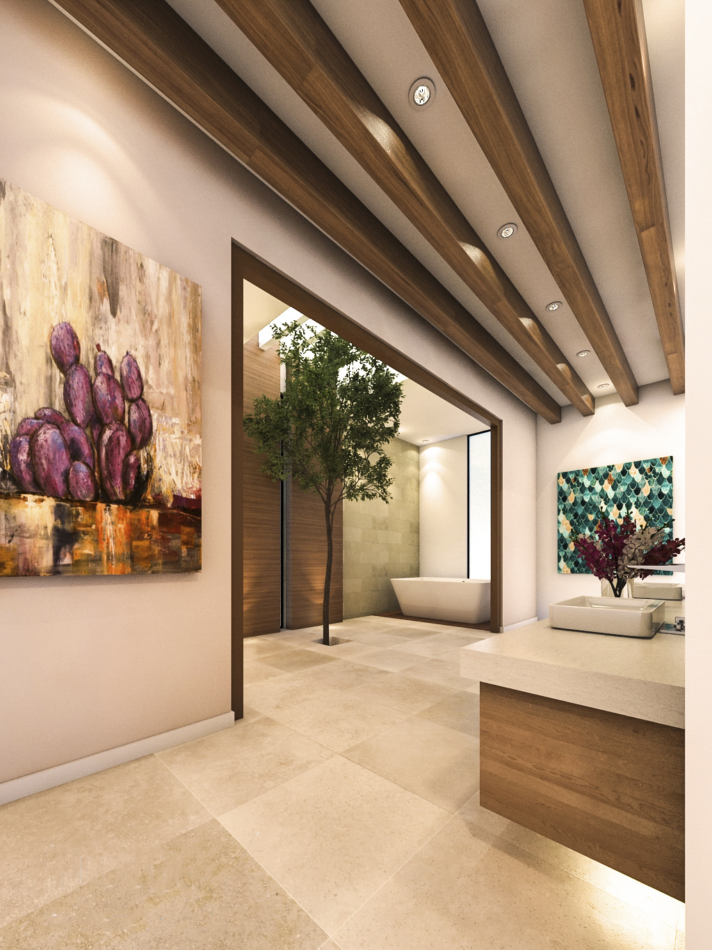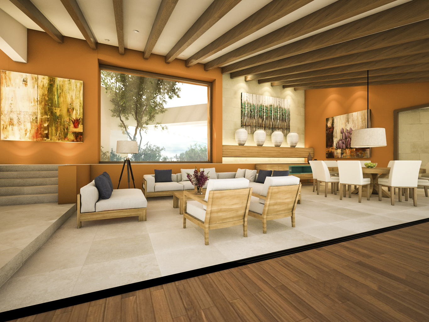 Residencia La Villa retoma los valores culturales de México, y se enorgullece de sus colores, sus texturas, y sus costumbres. El uso de materiales como la piedra, la cantera, el ladrillo y la madera fusionados con acero y cristal crean una atmósfera cálida y acogedora. Uno de los espacios con mas importancia dentro del proyecto es la recámara principal, ya que los clientes necesitaban un espacio para relajarse, lejos de la ciudad, su bullicio y ruido, la recámara se compone de área para dormir, vestidor y un baño abierto con un árbol al interior que divide la tina de la regadera y el inodoro. La sala, el comedor y la cocina se abren hacia el jardín con un juego de desniveles que van haciendo que la casa se descubra conforme se camina.